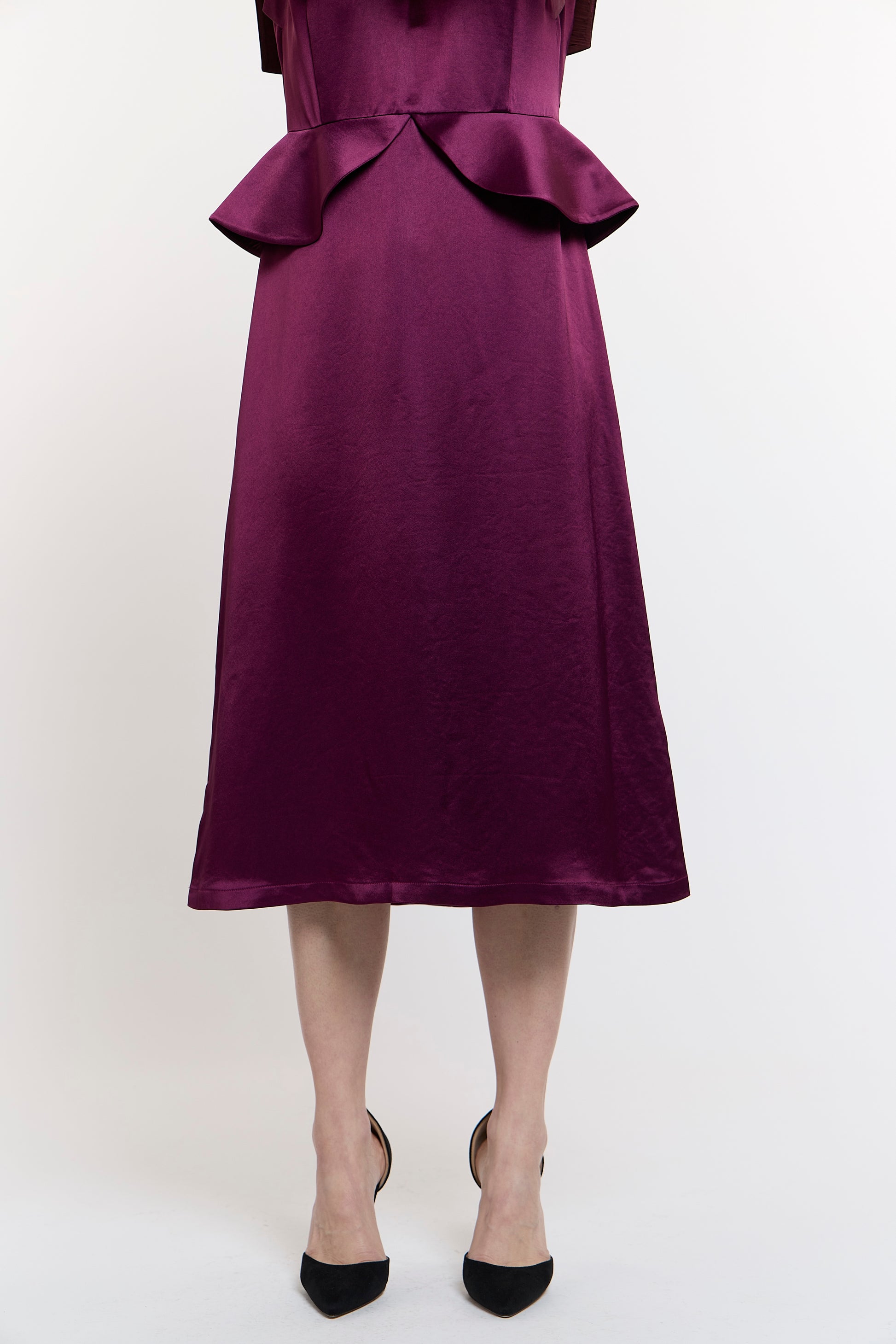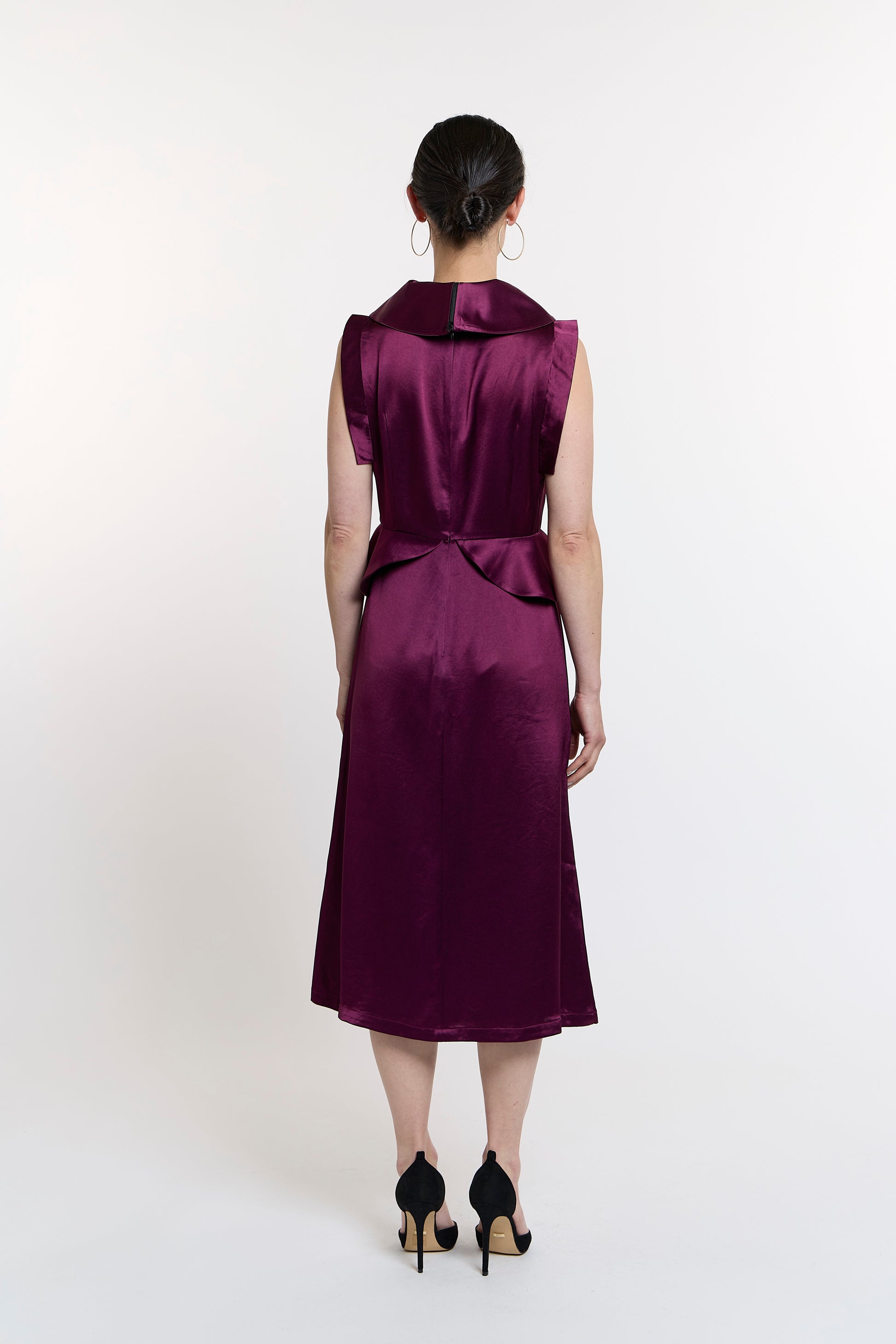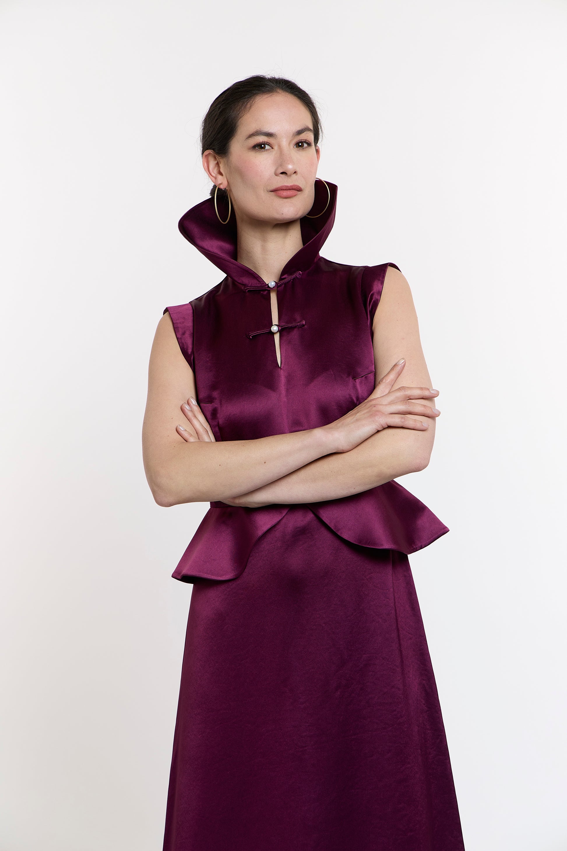 Zara's Zenith Gown is a peplum dress showcases versatility with three distinct collar styles: elevate the collar for an air of sophistication, fold it halfway down for a touch of elegance, or undo the first Pankou button to spread the collar gracefully over the shoulders. The A-line skirt further enhances its allure, making you the center of attention wherever you go.