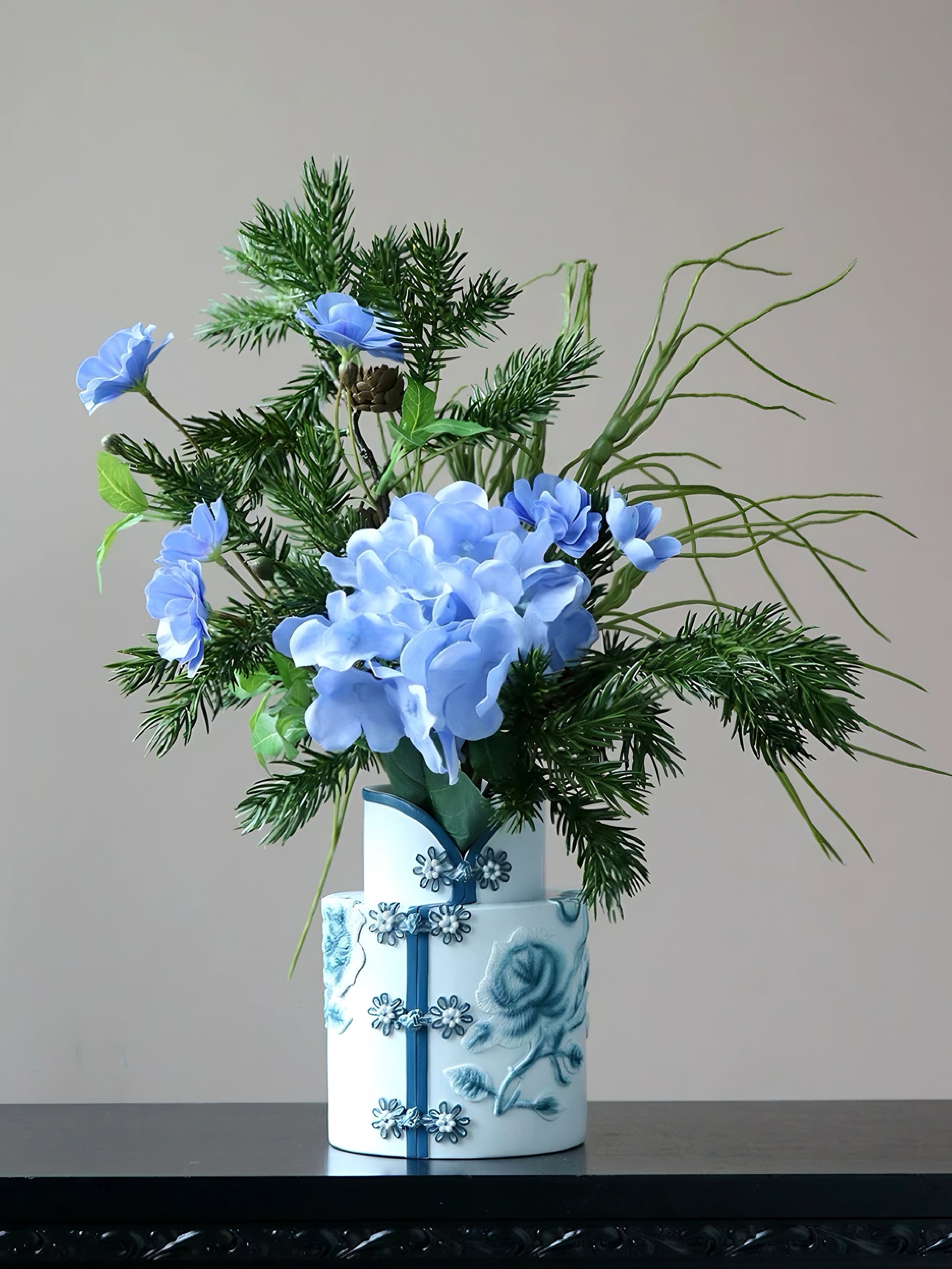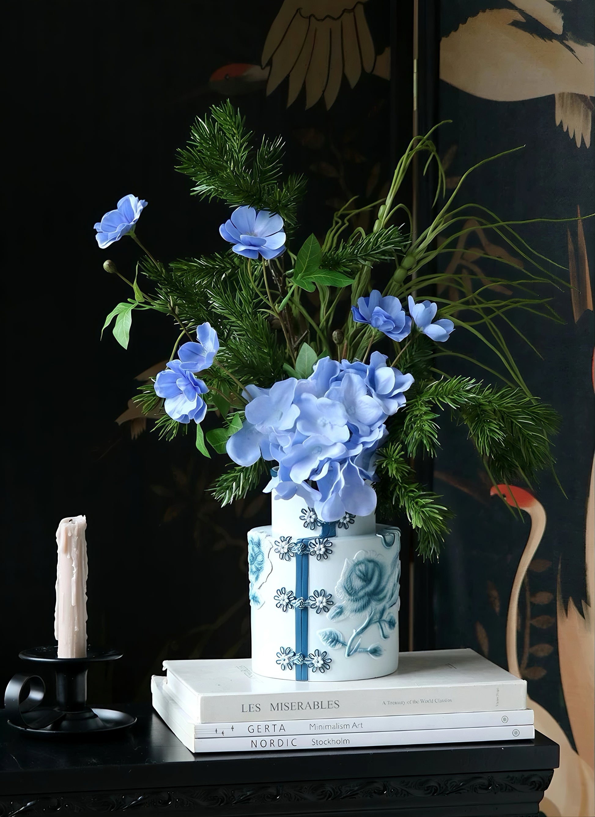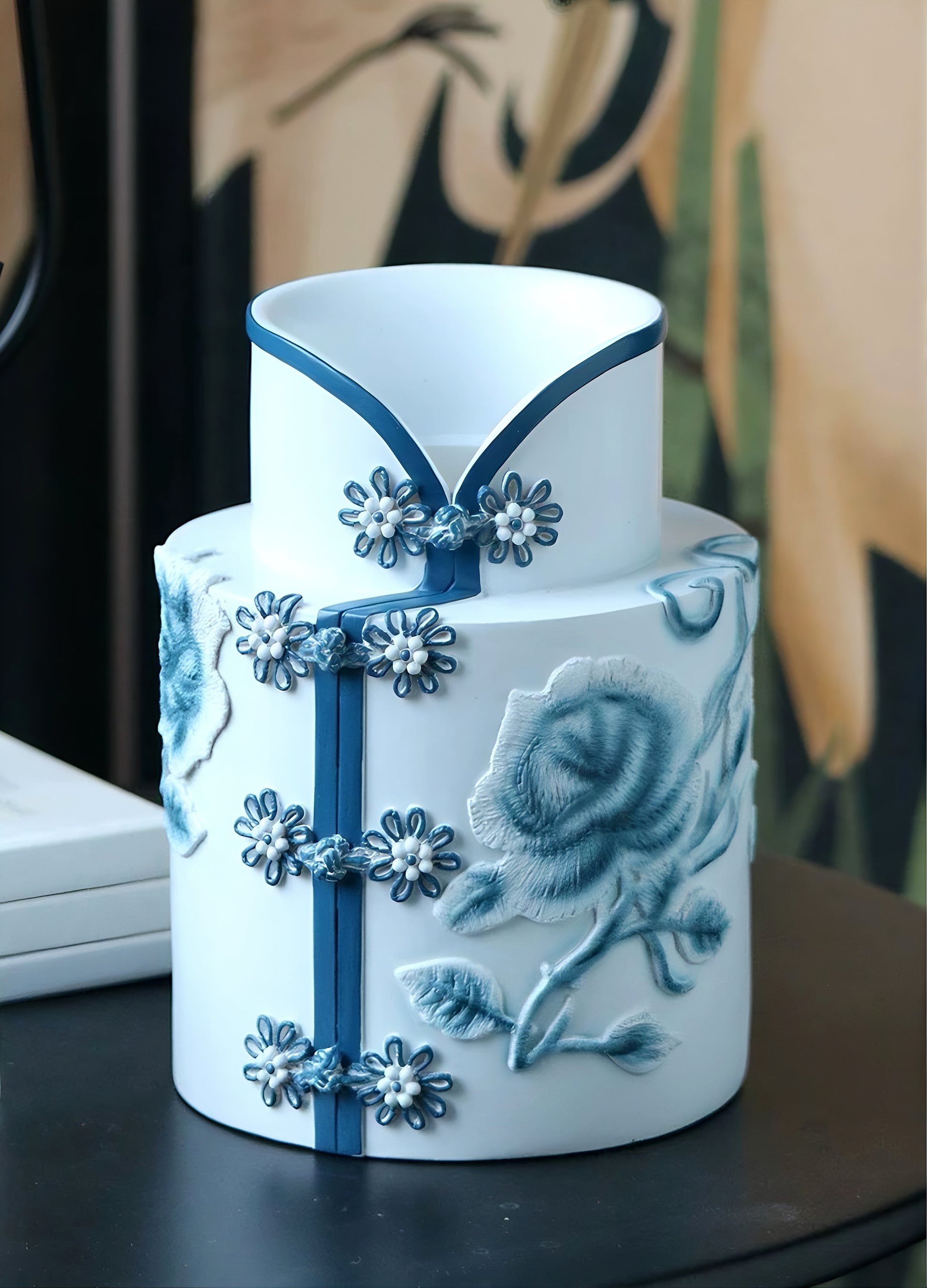 Poised and poetic, Ink Grace draws inspiration from the stillness of autumn and the timeless beauty of blue-and-white porcelain. The 3D embossed rose motifs on its hand-painted surface evoke a quiet elegance, while the qipao-style knot detail adds a refined cultural touch.